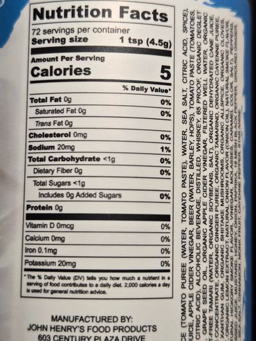 Please note all the ingredients and only 5 calories per serving.