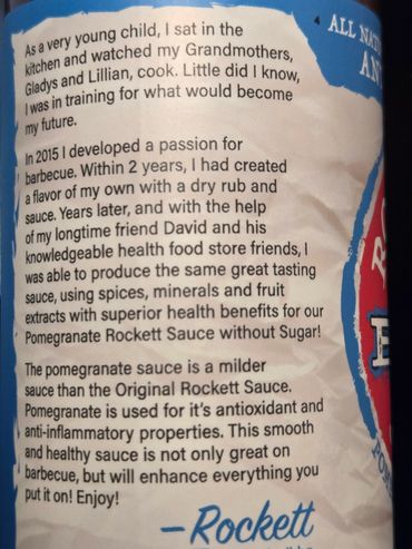 Todd Rockett's longtime friend David and his knowledgeable health food store friends helped formulate these amazing BBQ sauces.